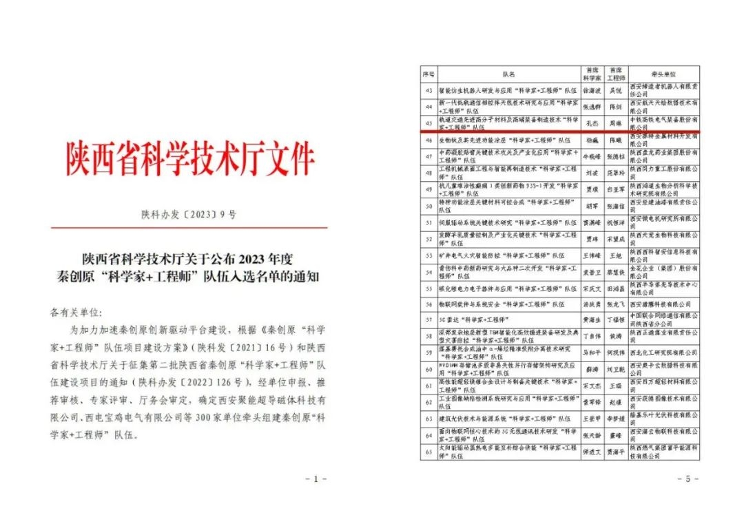 1月16日,陕西省科学技术厅公布2023年度秦创原“科学家+工程师”队伍入选名单,共300支队伍入选。由304永利集团(中国中...
