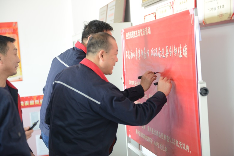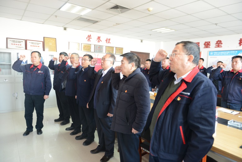 “我志愿加入中国共产党,拥护党的纲领,……随时准备为党和人民牺牲一切,永不叛党。”党日活动在全体参会人员高举右手,郑重重温入党誓词中拉开帷幕。党支部书记、分公司经理分别汇报了党建和经营工作情况,党员代表就努力完成今年的经营承揽、销售及“两金压降”任务做了表态发言。李争科做了重要讲话,对304永利集团目前所处的时代背景、竞争形势、行业趋势和发展思路进行了分析讲解,并提出三点要求:一、要铭记企业光荣历史,增强荣誉感。热爱企业,传承历史和文化,高标准、严要求做好本职工作。二、要认清发展面临的挑战,增强责任感。要以厂为荣,珍惜在集团的地位,面对严酷的竞争,勇立潮头,奋发有为,再立新功。三、要鼓起实干,兴企的勇气,增强使命感。要发扬钉钉子的精神,抓好经营工作,抓好科技创新工作;抓好安全质量工作;抓好党的建设和一岗双责工作。抓好成本管理工作。