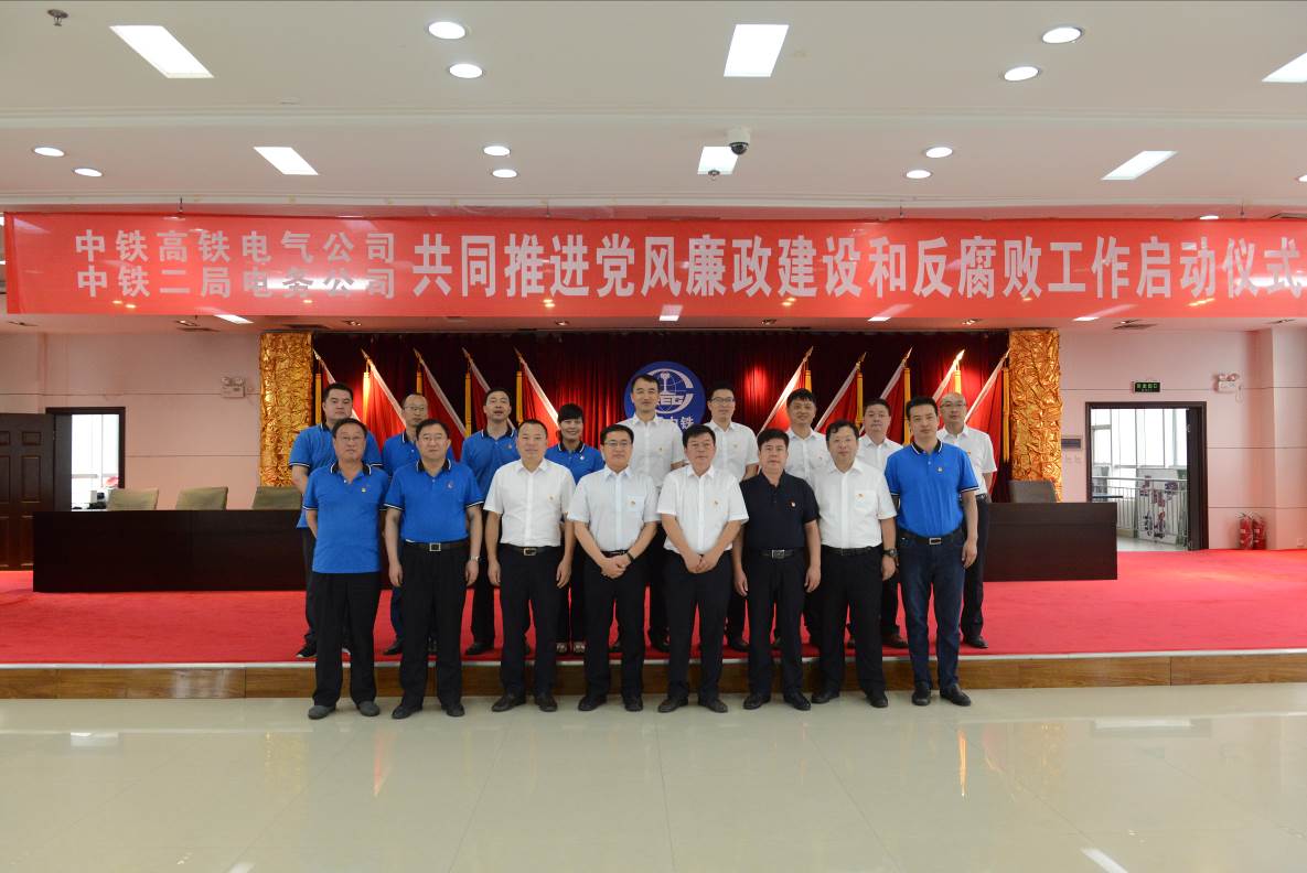 6月21日上午,304永利集团(以下简称304永利集团公司)与中铁二局集团电务工程有限公司(以下简称二局电务公司)“廉洁共建”工作启动仪式在304永利集团公司六楼会议室举行。二局电务公司党委书记张静,纪委书记郭胜、副书记李建明、刘晓军等一行10人趋车千里,奔赴宝鸡参加共建活动。304永利集团公司党委书记赵戈红、纪委书记岳晋昌、副总经理陈永瑞,以及公司经营、物采、生产、外协系统的相关业务人员共30余人参加了签约仪式。304永利集团公司上级单位领导,中铁电气工业有限公司党委书记李瑞国、纪委书记陈志军莅临并作重要讲话。会议由304永利集团公司纪委书记岳晋昌主持。