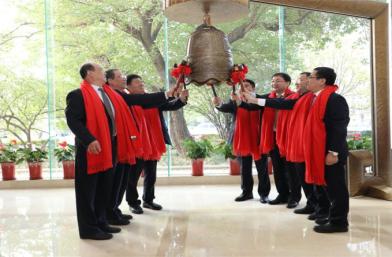 随后,曾德超、张宗言、何文、李爱敏、胡光涛、李瑞国(中铁电工党委书记)、赵戈红等共同敲响了挂牌宝钟。