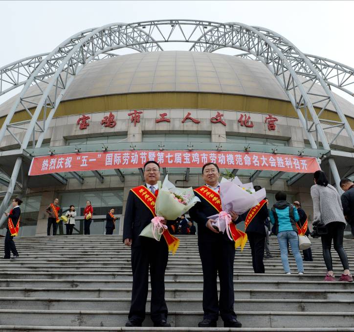 4月26日,宝鸡市委、市政府、市总工会隆重召开第七届劳模命名表彰大会,公司总经理赵戈红、工会主席岳晋昌两名同志同时获得宝鸡市劳动模范称号。
