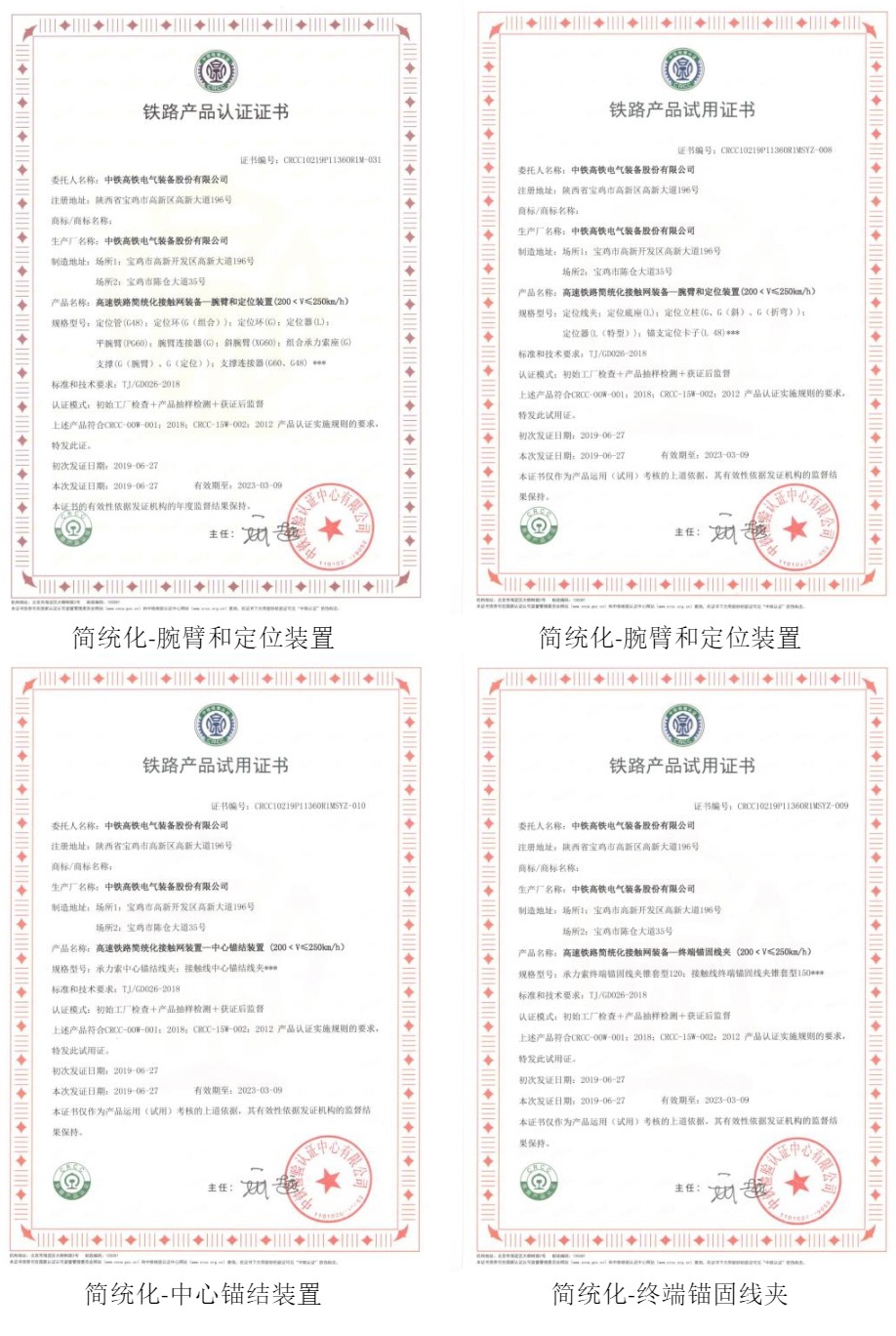 CRCC铁路产品认证证书