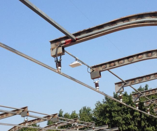 应用范围: 用于城市轨道交通有轨电车-超级电容系统机车供电。装置组成: 钢铝复合接触轨、中间接头、电缆连接板、中心锚结、端部弯头、悬吊线夹、绝缘子、调整底座等。
